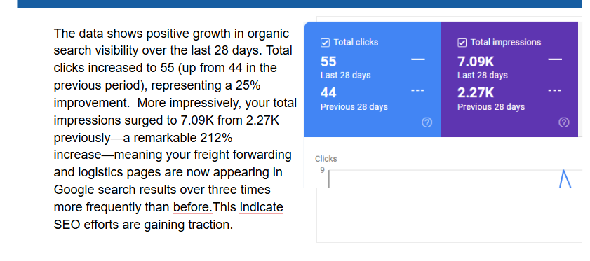 This growth came from a combined SEO + Google Ads strategy focused on freight forwarding and logistics keywords Delta SEO Report (3)